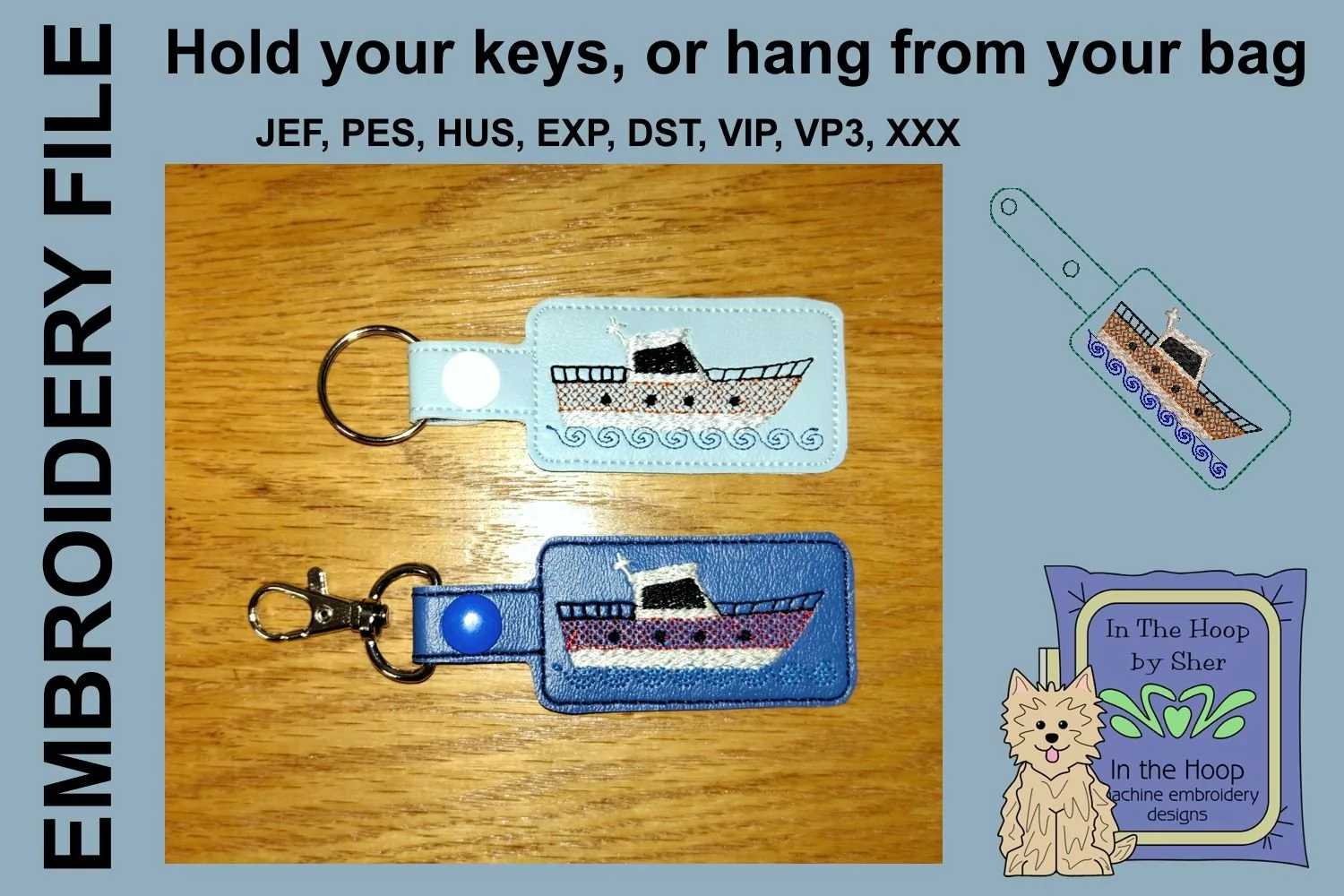 IN THE HOOP / MACHINE EMBROIDERY DESIGN to make this boat key fob.