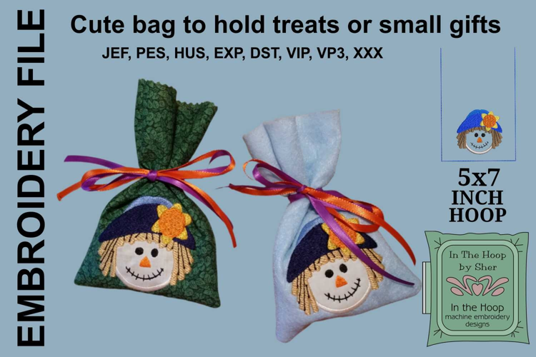 Embroidery Design Gift Bag Halloween Embroidery Treat Bag Small Gift Bag Halloween Treat Bag Scarecrow Embroidery Fall Embroidery Scarecrow Treat Bag Fall Treat Bag