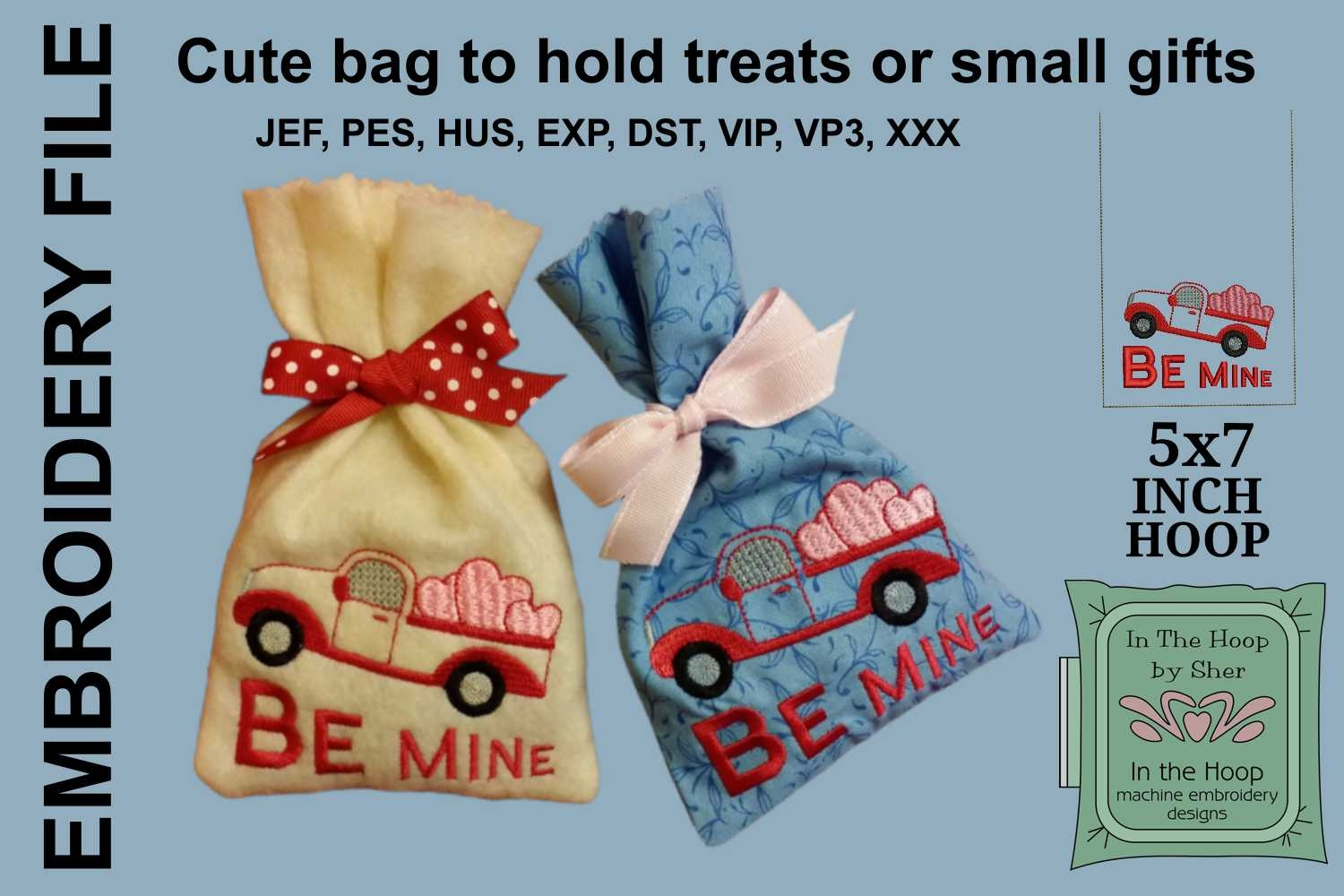 Embroidery Design Gift Bag Treat Bag Small Gift Bag Truck Embroidery Valentine Embroidery Hearts Embroidery Valentine Gift Bag Valentine Treat Bag Truck Gift Bag