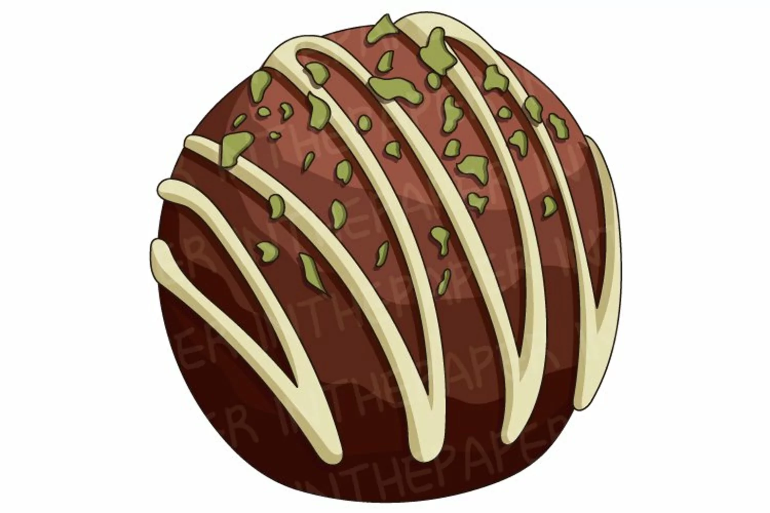🍫 Indulge your senses with our "Delicious Chocolate Ball with White Chocolate and Pistachio Sprinkles" illustration.