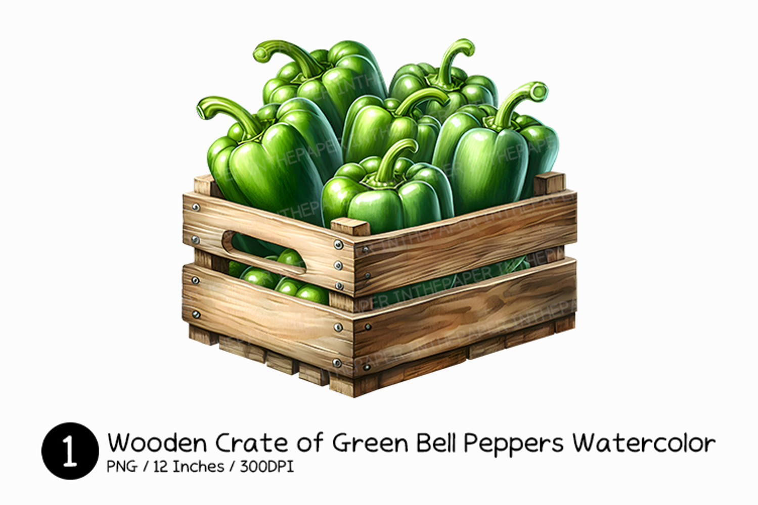 Wooden Crate of Green Bell Peppers Watercolor Farm Fresh PNG example image 1