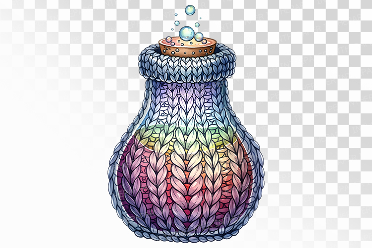 💖 This digital artwork features a knitted potion bottle with a warm, comforting texture. The design captures the magical essence of a witch's brew in a soft, whimsical style, perfect for Halloween projects.