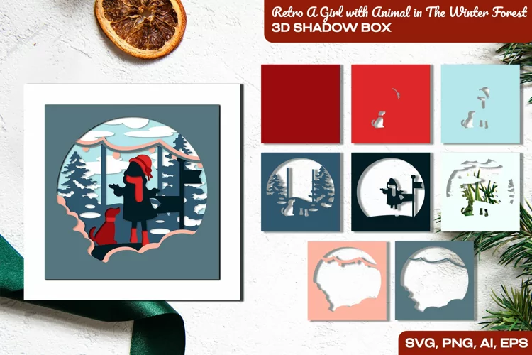 Retro A Girl with Animal in The Winter Forest 3D Shadow Box example image 1