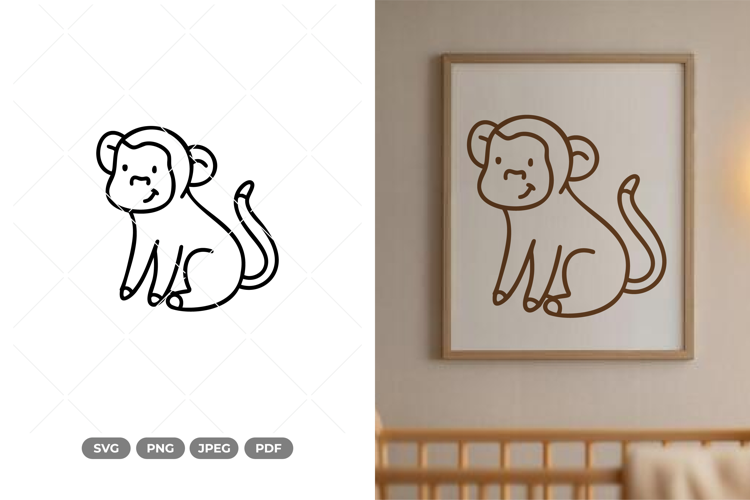 Cute Monkey SVG & Clipart - Nursery Doodle example image 1