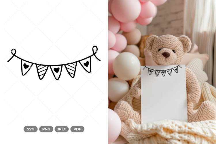 Illustration Svg Doodle Cute Birthday Drawing Line Art Decoration Cut File Garland