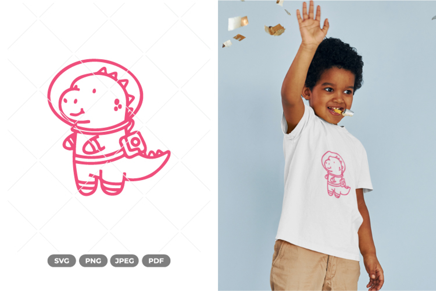 Illustration Cartoon Svg Print Doodle Cute Baby Cut Files Astronaut Dinosaur