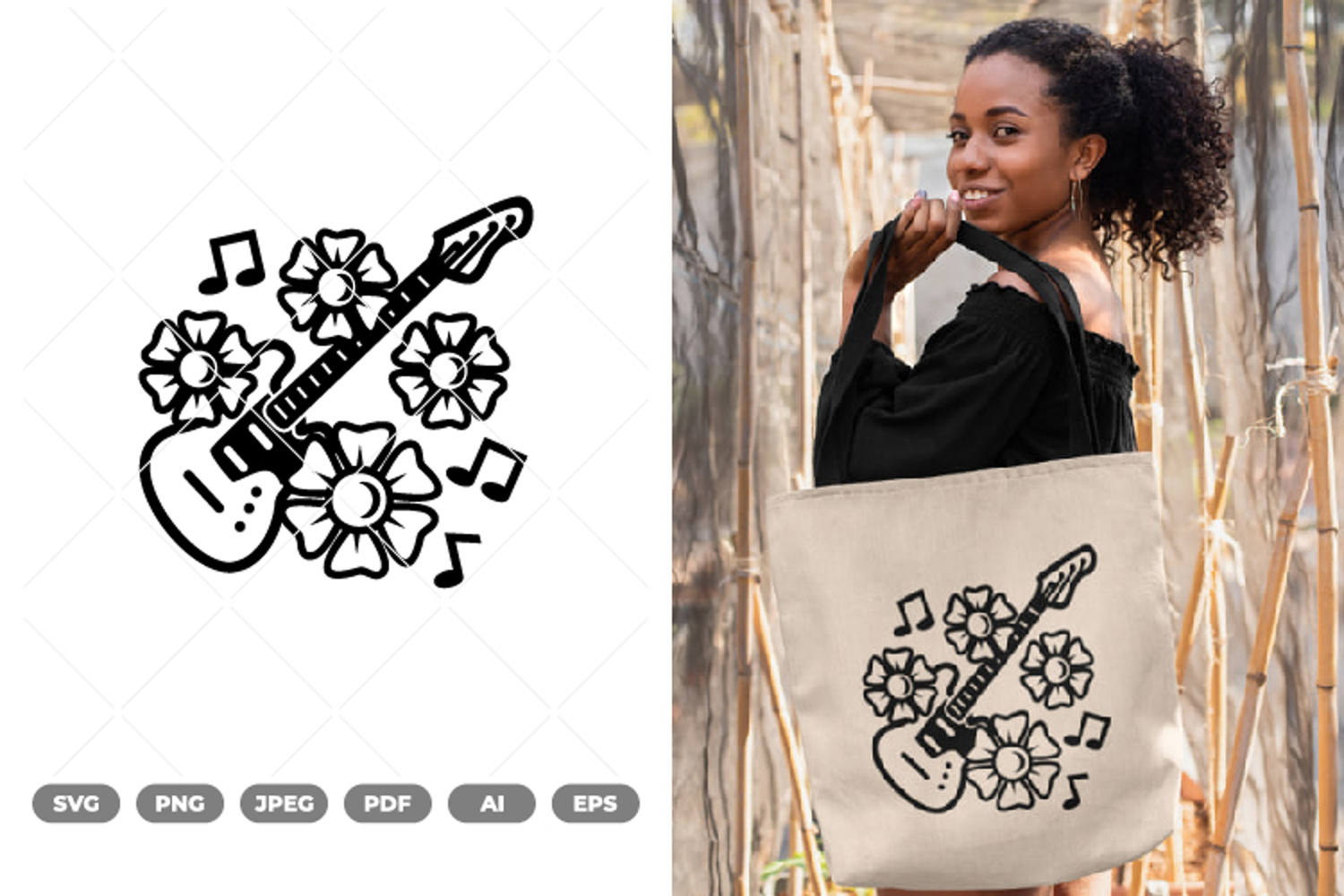 Illustration Vector Art Design Music Floral Guitar Background Decoration Festival