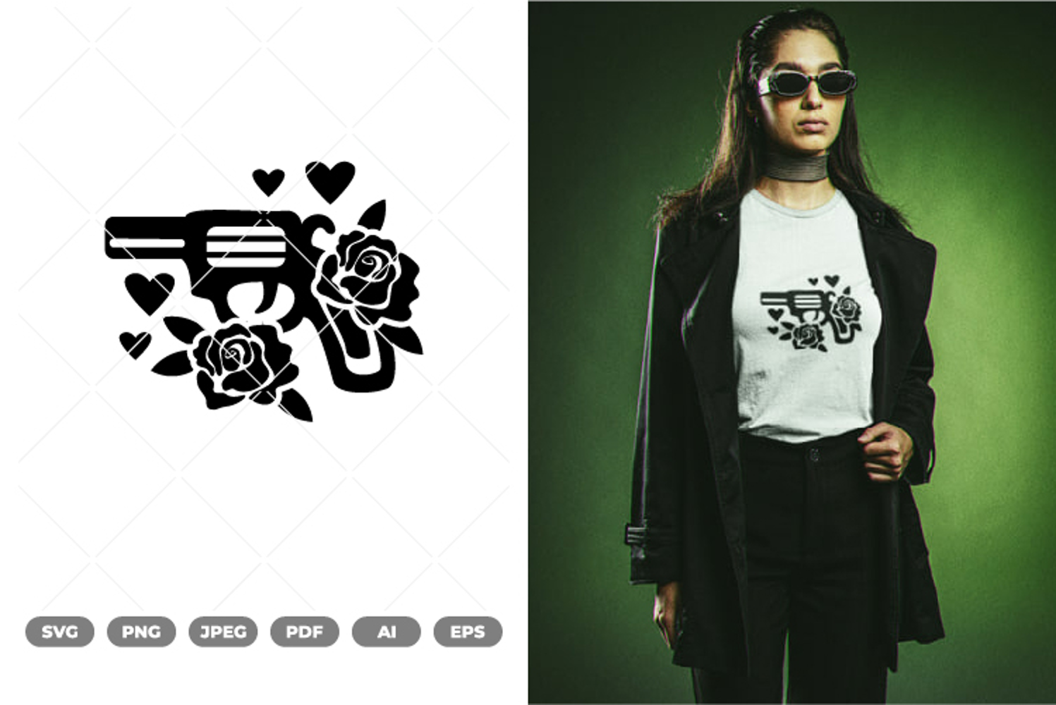 Vintage Retro Illustration Symbol Vector Art Flower Graphic Rose Gun