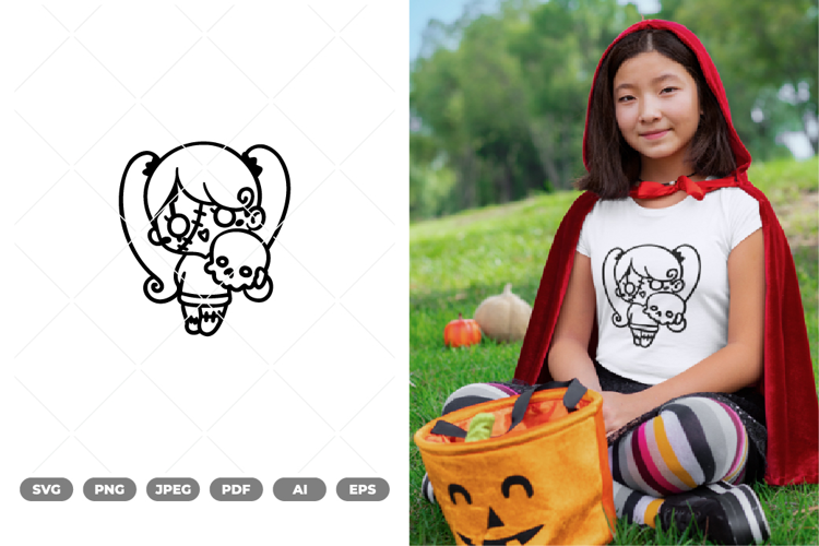 Kawaii Chibi Zombie Girl SVG & Clipart example image 1