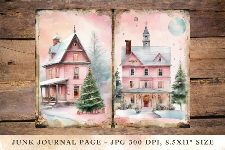 Similar Design Products to Printable Junk Journal Pages pink christmas 2