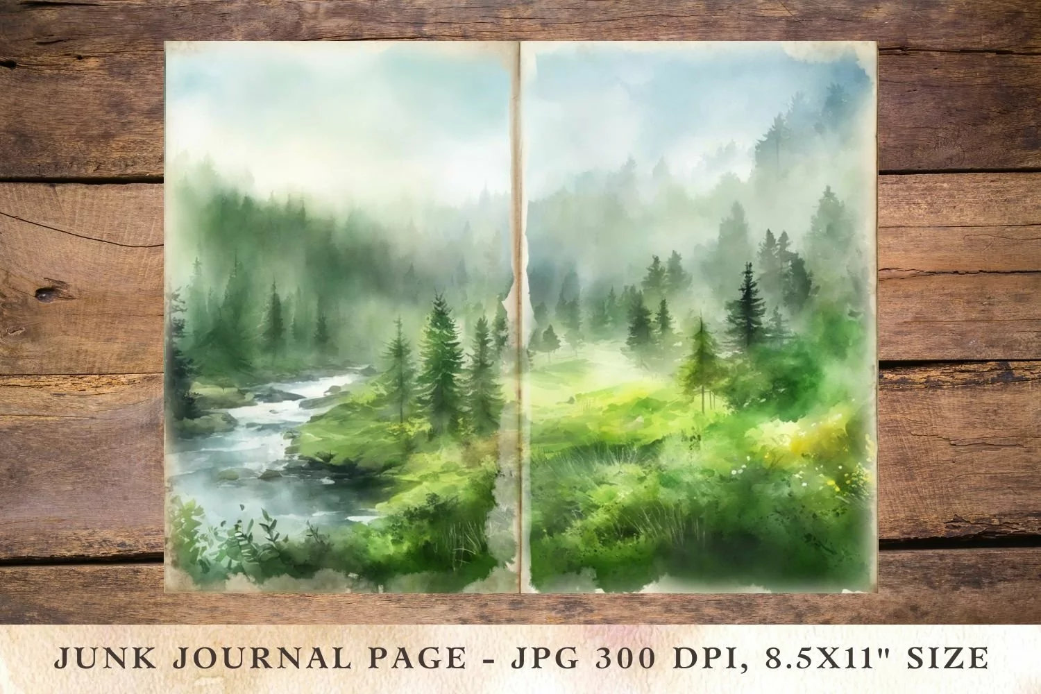Similar Design Products to Printable Junk Journal Pages green landscape 2