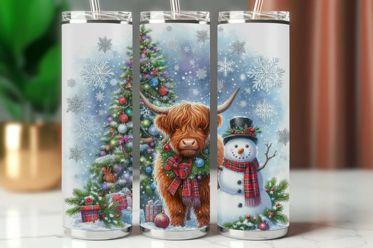 Tumbler Wrap 20 oz - highland cow snowman example image 1