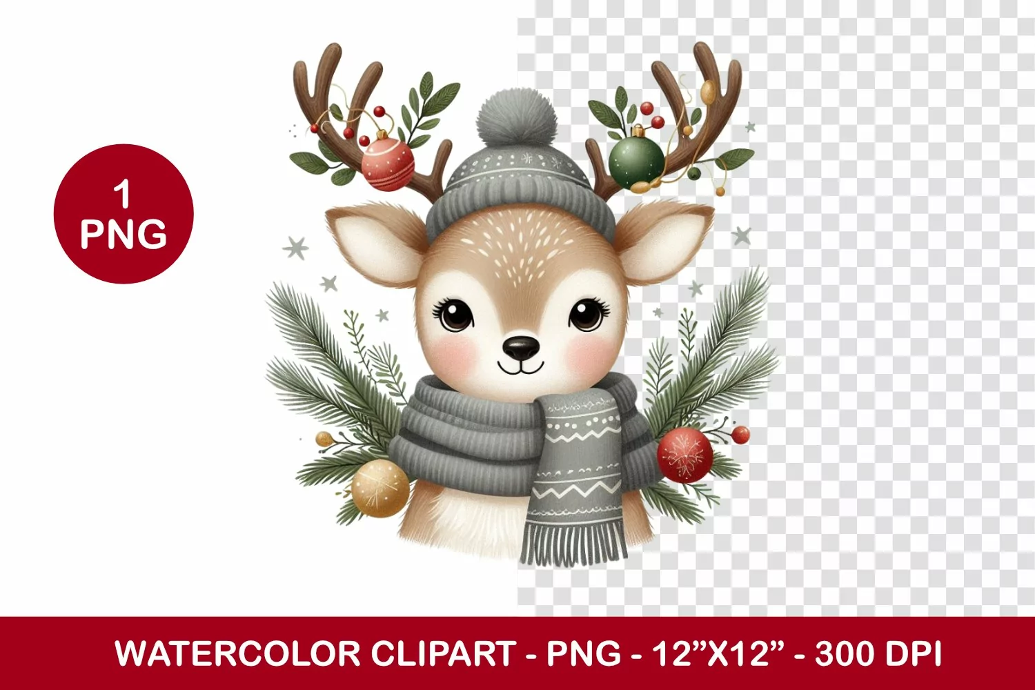 png watercolor clipart - reindeer with christmas ornament example image 1