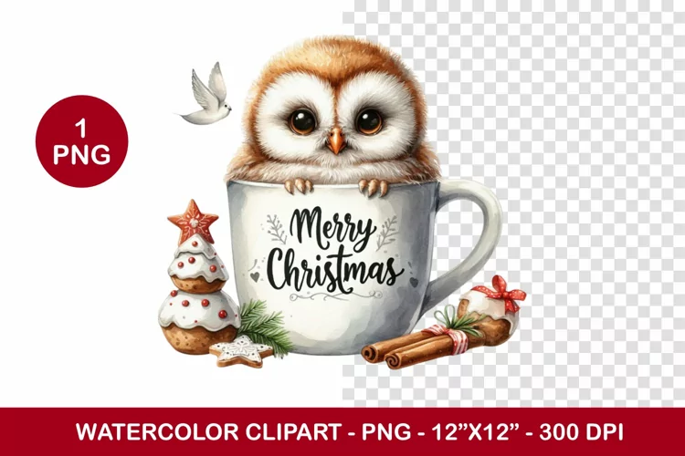 png watercolor clipart - baby owl in the mug example image 1