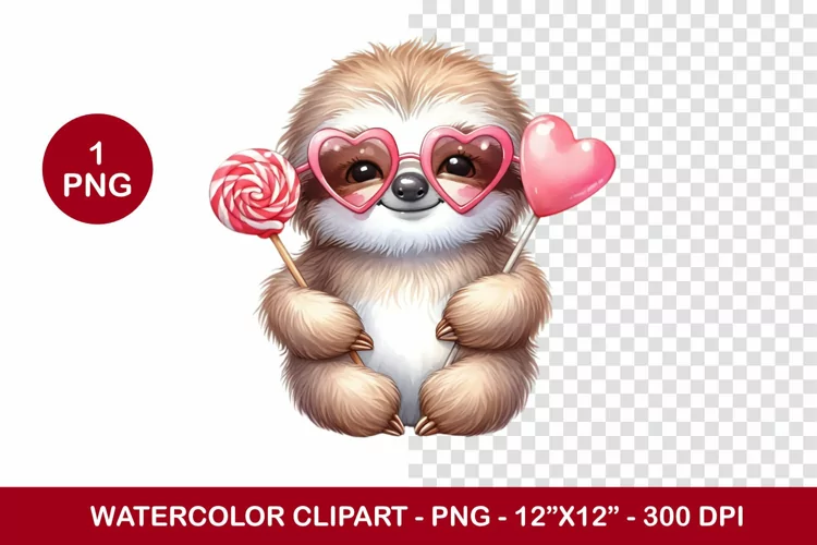 valentine png watercolor clipart - sloth example image 1