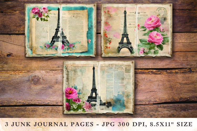 Similar Design Products to Junk Journal Pages - paris eiffel tower
