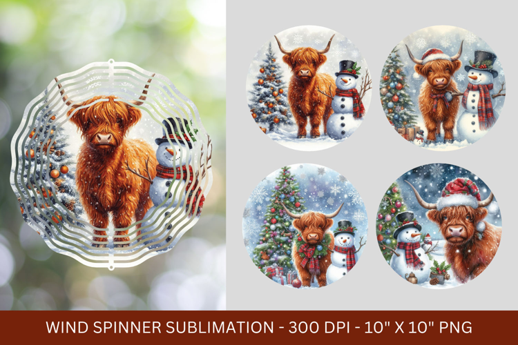 wind spinner png sublimation - highland cow snowman