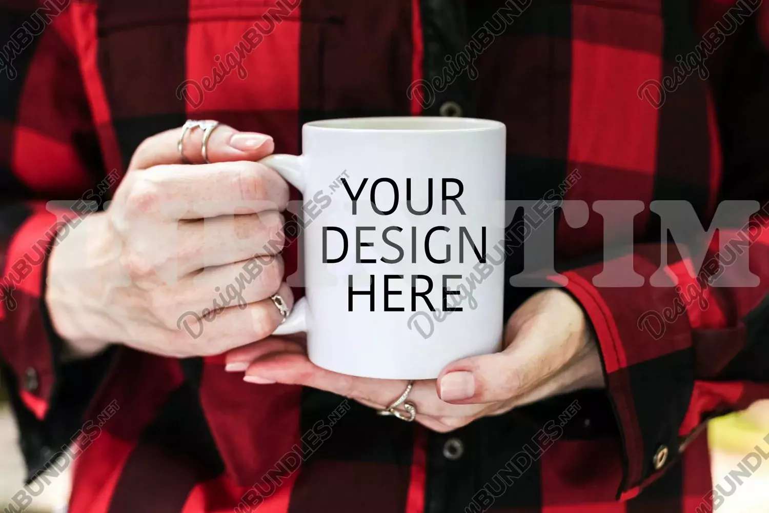 White coffee mug mockup 11 oz Cup mockup in hands example image 1