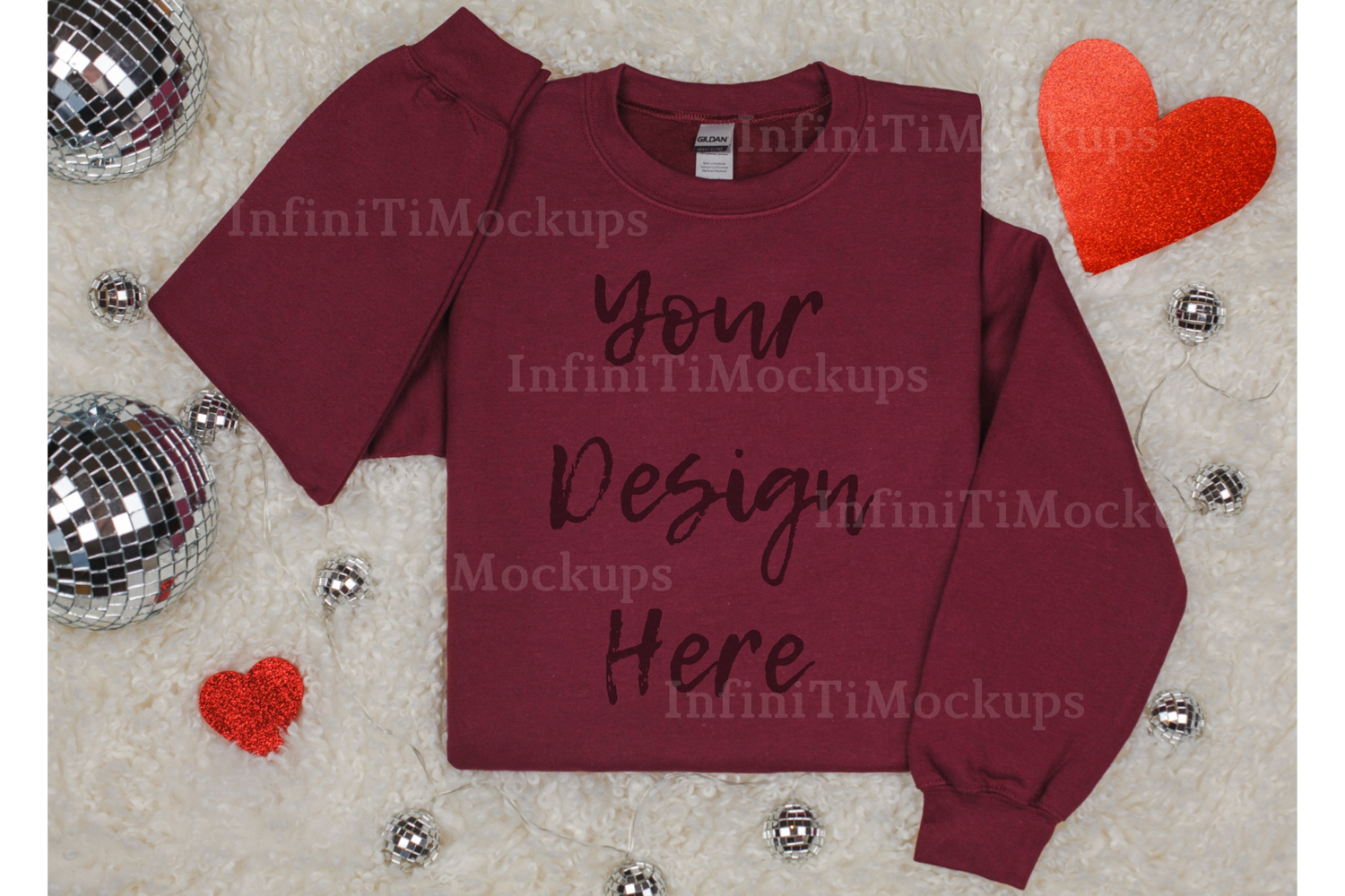 Valentines Day Gildan 18000 Maroon sweatshirt mock up example image 1