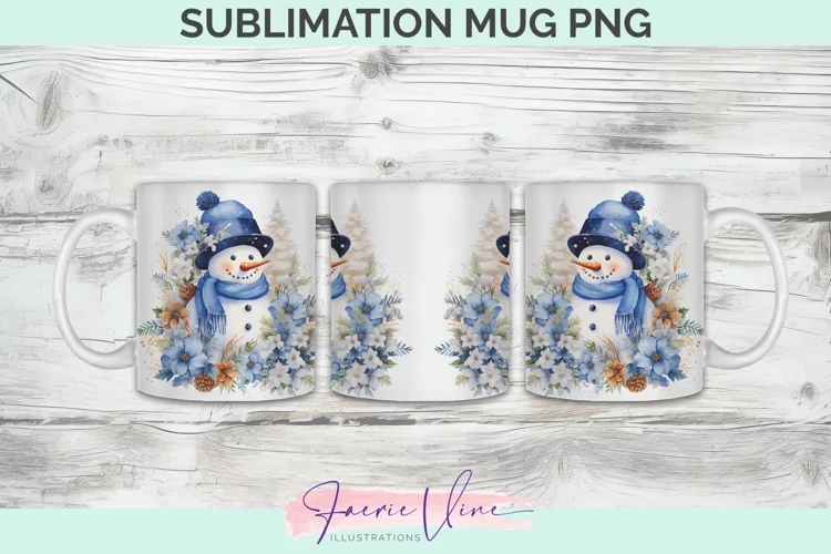 Christmas Snowman Mug sublimation design 300DPI PNG files.