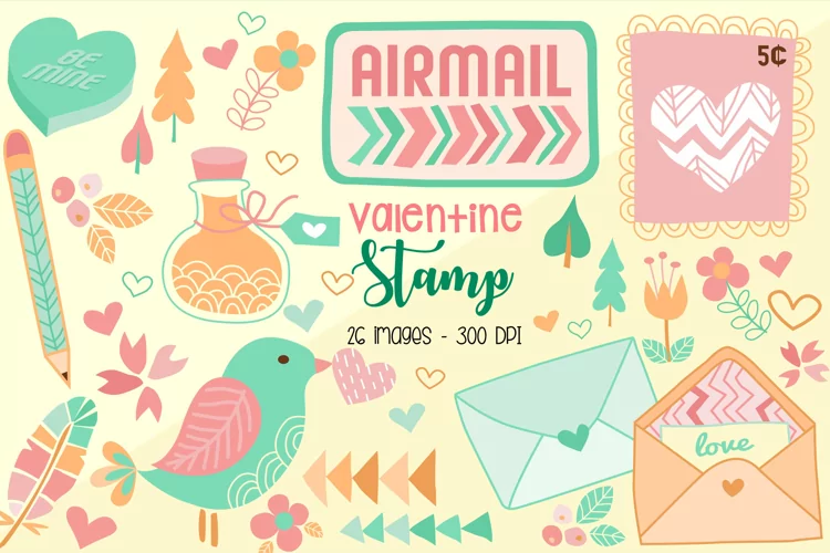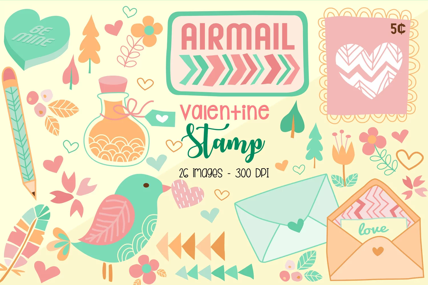 Flower Clipart Valentine's Day Heart Clipart Valentine Clipart Bird Clipart Love Clipart Sweet Clipart Mail Clipart Letter Clipart Airmail Clipart