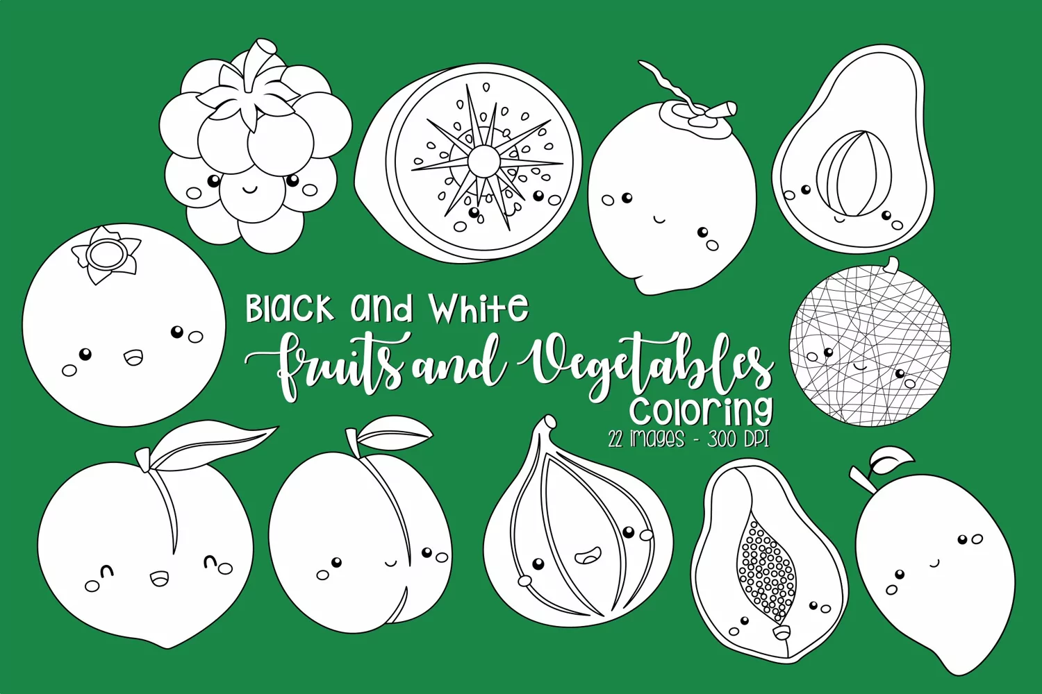 Black and White Coloring Fruits and Vegetables