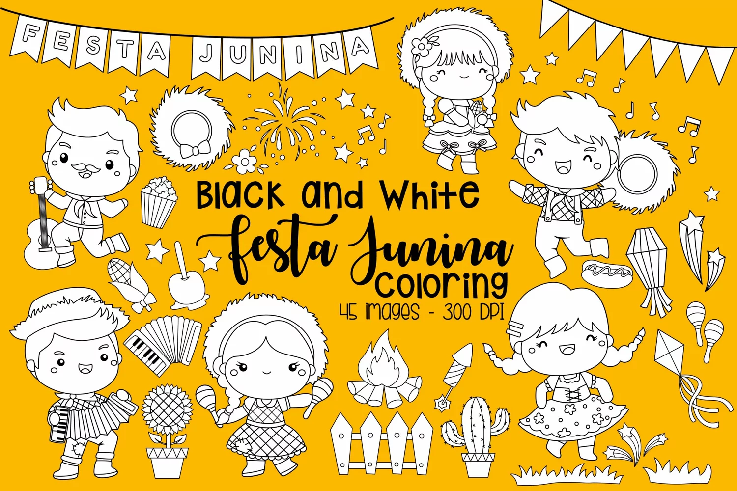 Black and White Coloring Festa Junina