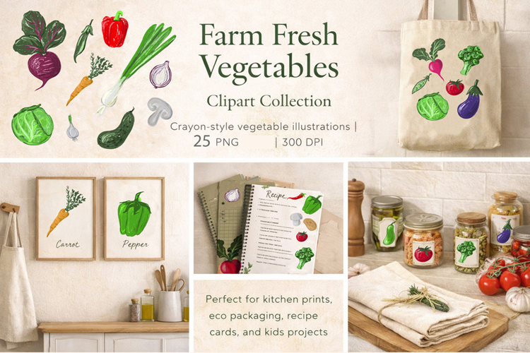 Similar Design Products to Farm Fresh Vegetable Clipart Set, Food Illustration