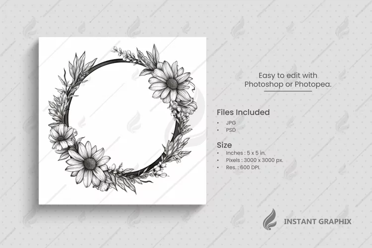 Wedding Card Greeting Sketch Nature Floral Flowers Frame Circular