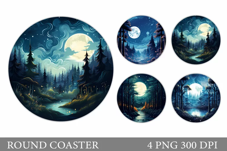 Moon With Forest Coaster Night Forest Round Coaster Nature Round Coaster Sublimation 3d Forest Round Coaster Design Forest Moon Coaster Design Night Forest Sublimation 3d Forest Round Coaster Moon Coaster Sublimation Night Forest Round Coaster Design Night Forest Round Sublimation