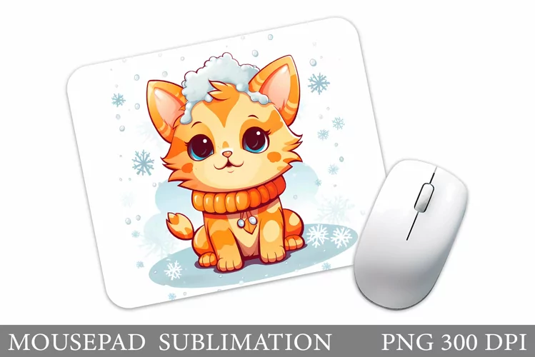 Cute Cat Mouse Pad. Winter Cat Mouse Pad Sublimation example image 1