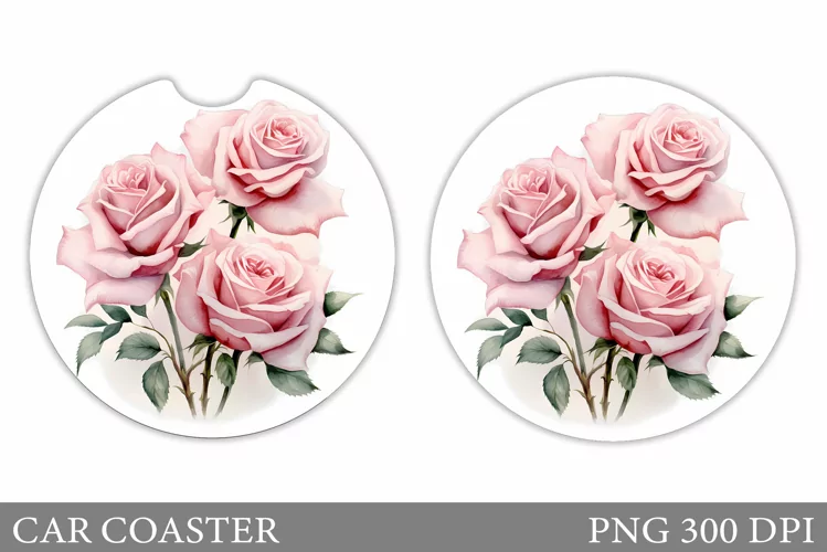 Roses Watercolor Car Coaster. Roses Car Coaster Design