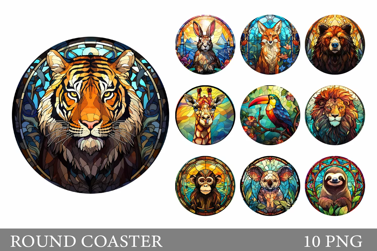 Animals Round Coaster Design. Stained Glass Animals Coaster