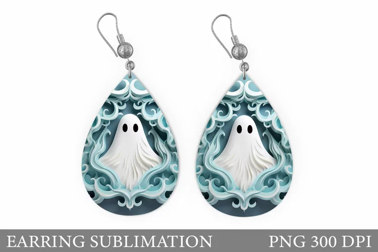 Ghost Earring Sublimation. Ghost Teardrop Earring Design