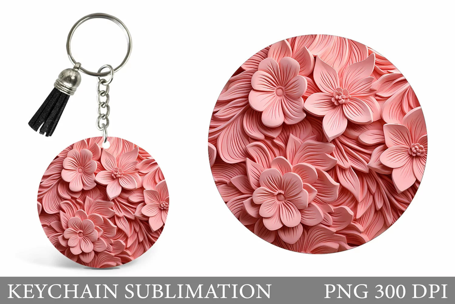 3D Flowers Keychain. Flowers Round Keychain Sublimation