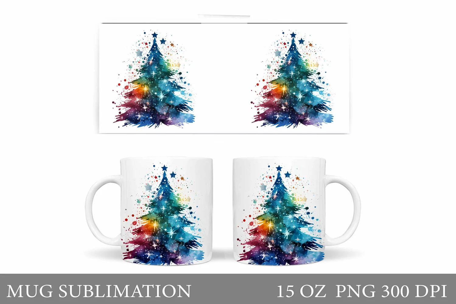 Christmas Tree Mug Wrap. Rainbow Christmas Tree Mug Design example image 1