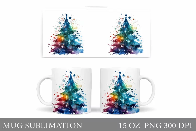 Similar Design Products to Christmas Tree Mug Wrap. Rainbow Christmas Tree Mug Design