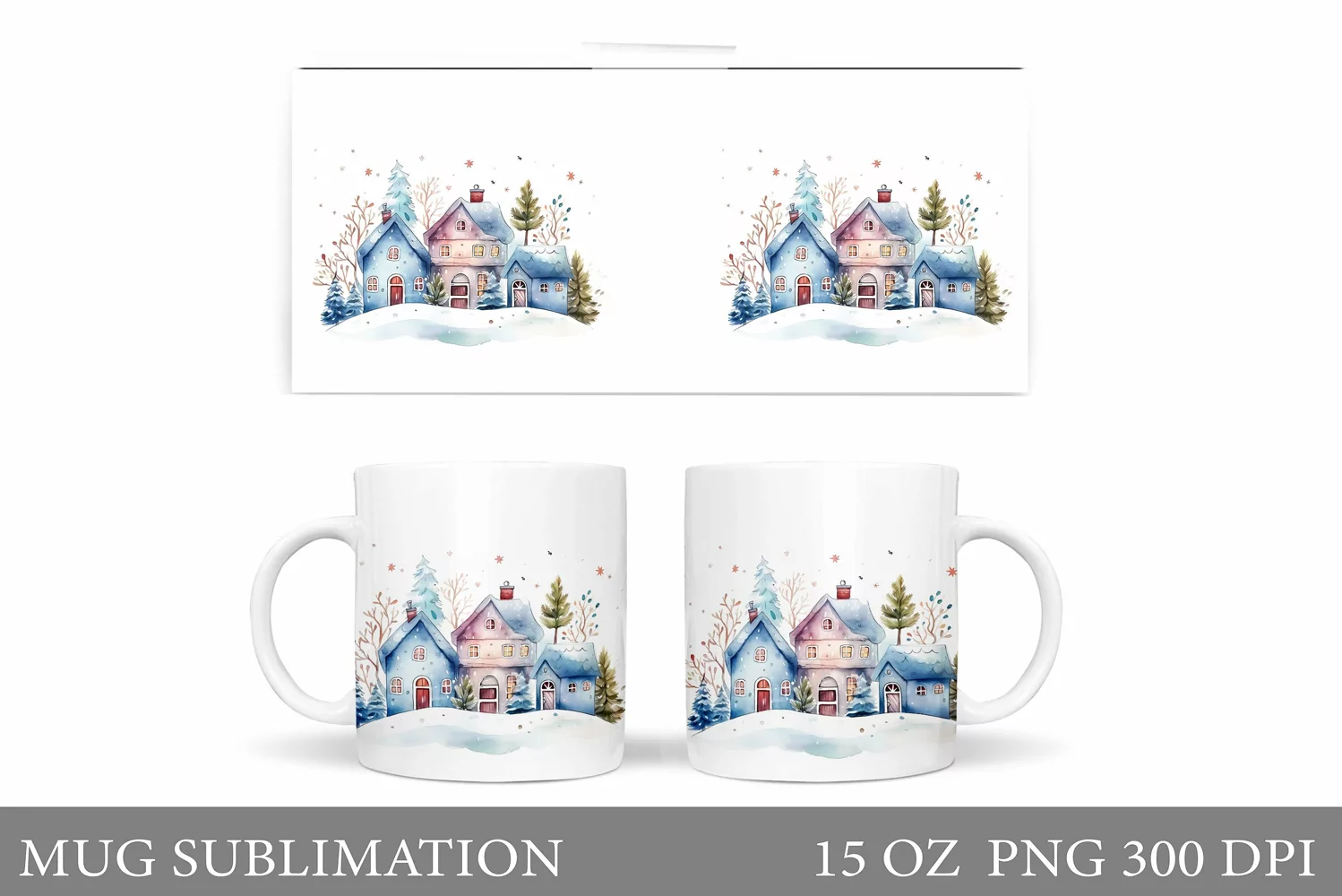 Similar Design Products to Winter Mug Wrap Sublimation. Winter Houses Mug Design