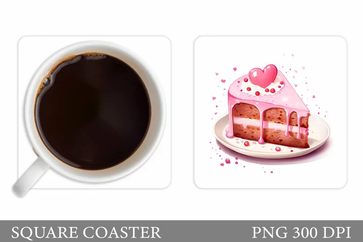 Cake Coaster Sublimation. Cake Valentines Coaster Design
