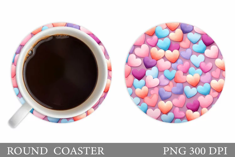 Hearts Coaster Design. Hearts Round Coaster Sublimation