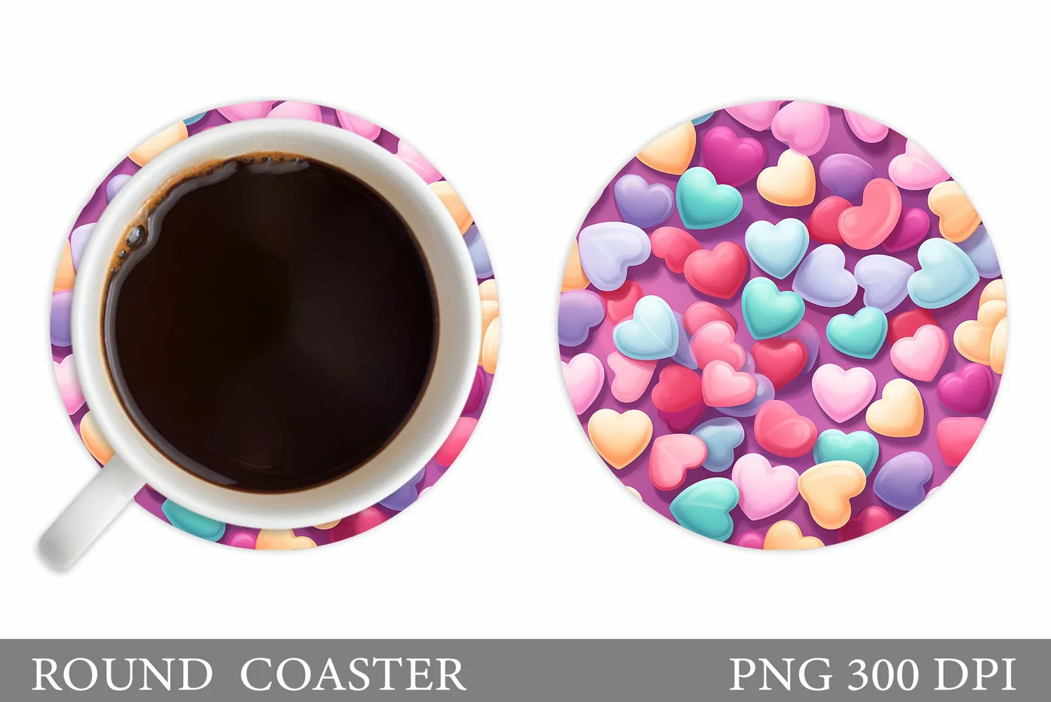 Hearts Coaster Sublimation. Round Coaster Hearts Design