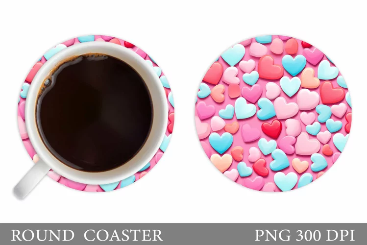 Hearts Coaster Sublimation. Hearts Round Coaster Design