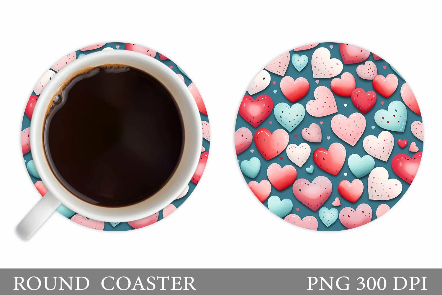Hearts Coaster Sublimation. Valentines Round Coaster Design