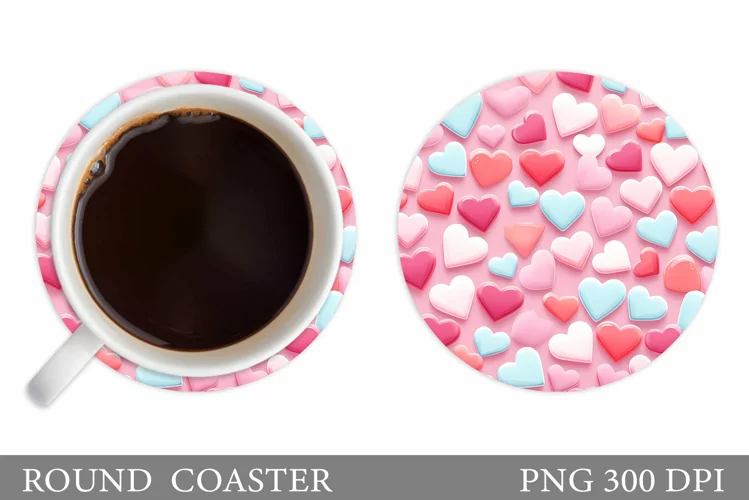 Hearts Coaster Sublimation. Valentines Coaster Design