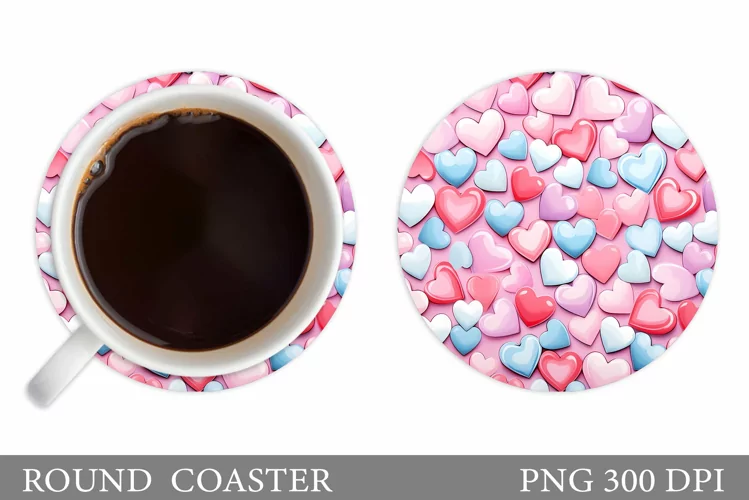 Hearts Coaster Sublimation. Valentines Coaster Design