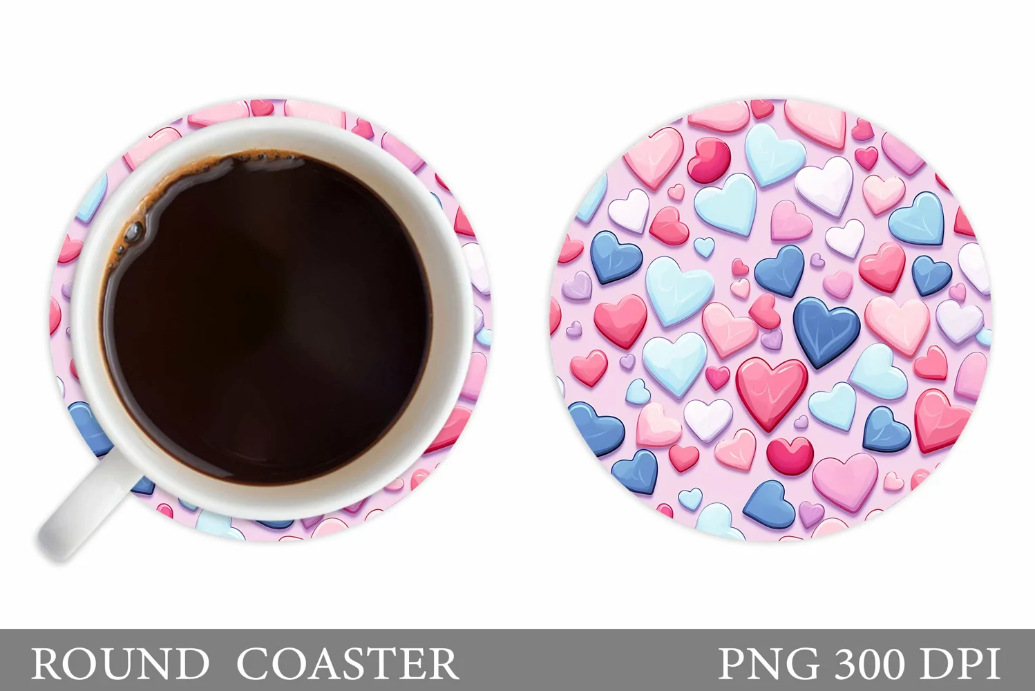 Hearts Coaster Sublimation. Valentines Round Coaster Design