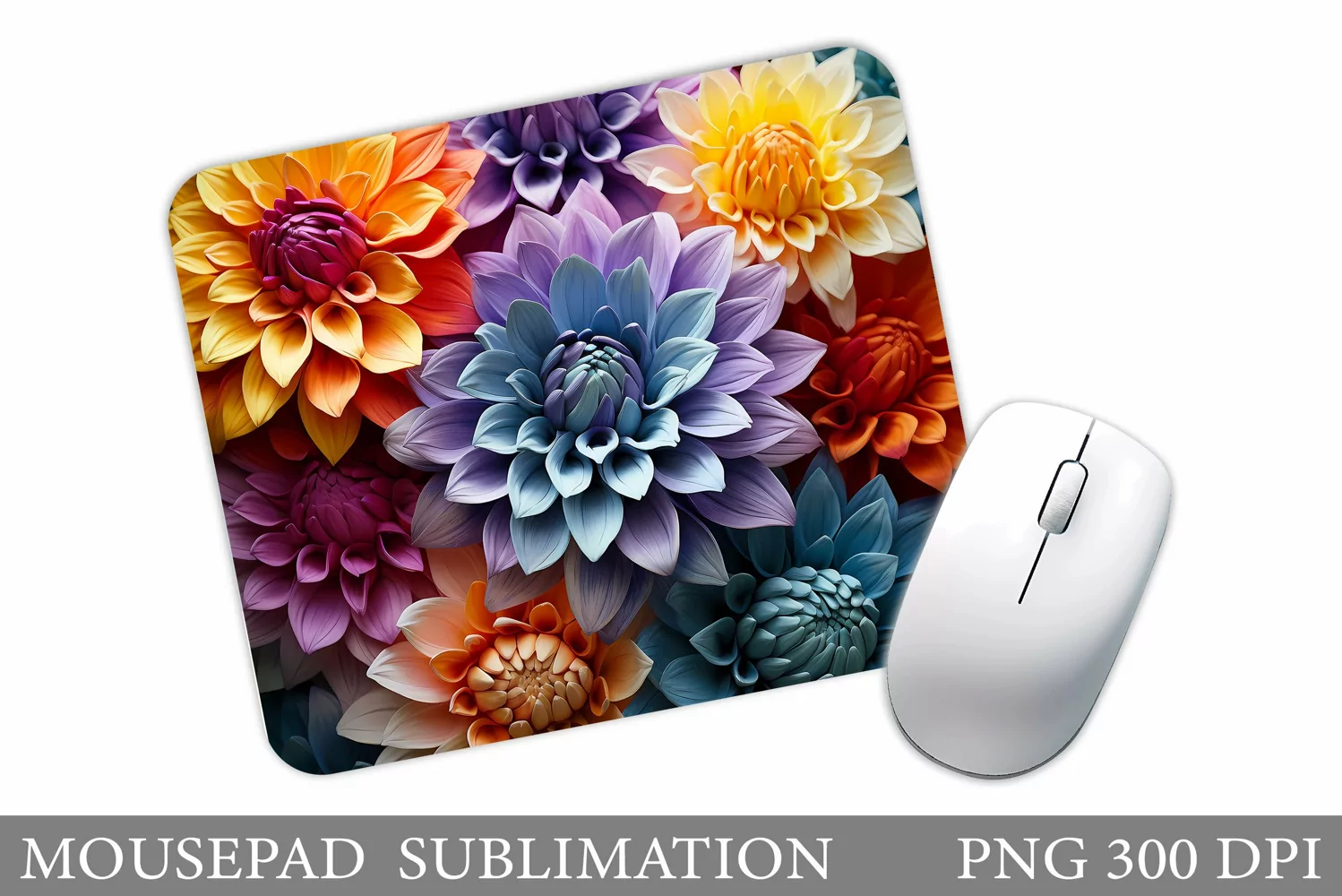 Flowers Mouse Pad Sublimation. 3D Flowers Mouse Pad Design example image 1