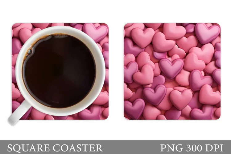 Hearts Coaster Sublimation. 3D Hearts Square Coaster Design example image 1