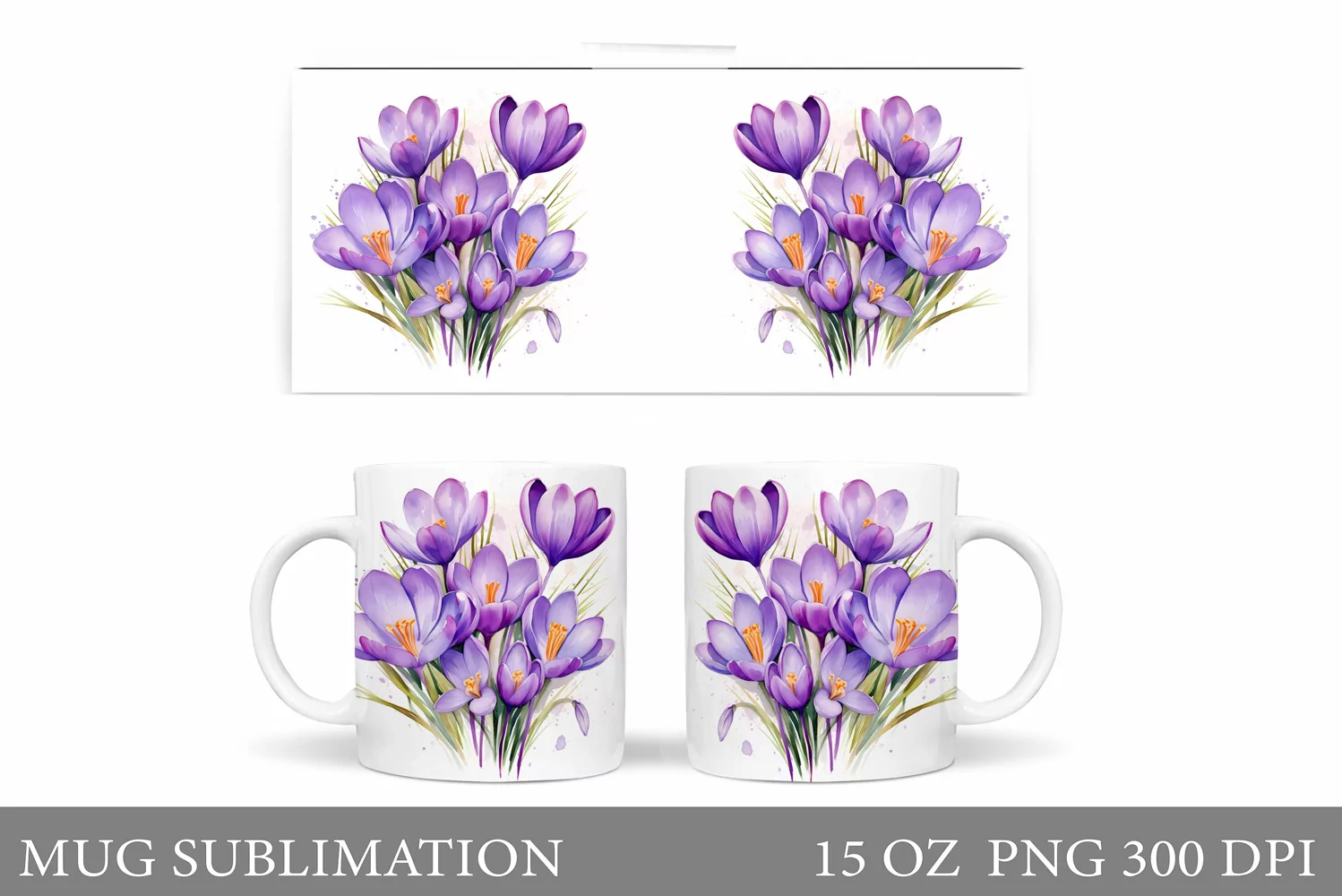 Flowers Crocus Mug Design. Spring Mug Wrap Template