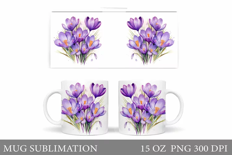 Similar Design Products to Flowers Crocus Mug Design. Spring Mug Wrap Template